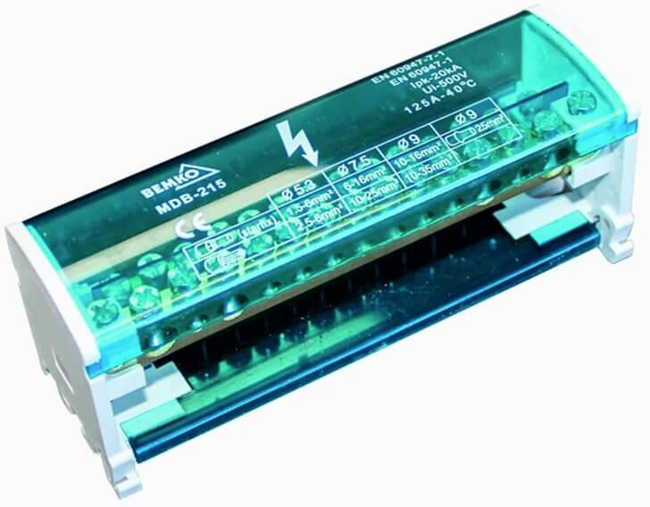 Elosztóblokk, 125A, 2db sín (15 furat/sín), A18-MDB-215, Bemko
