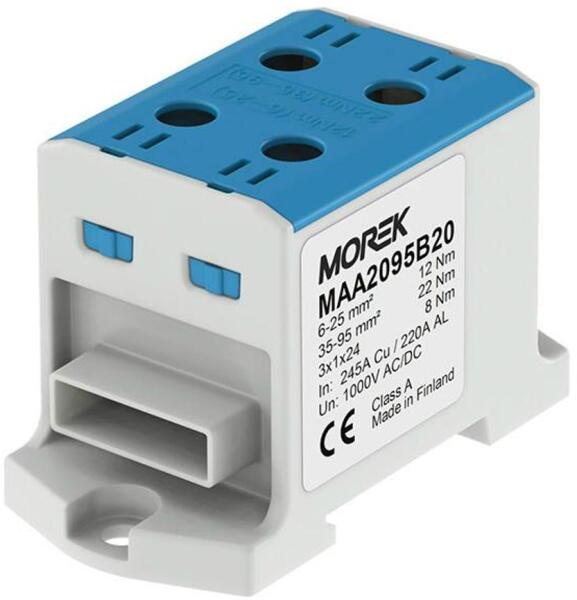 MOREK OTL95-2B Fővezetéki sorkapocs, 2xAl/Cu 6-95 mm2 / 3*1*24, 1500V, kék, flexisínhez (MAA2095B20) (MAA2095B20)