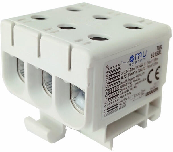 OMU system TUK62550L 6x2, 5-50mm2 (CU: 245A, AL: 220A) 1 pólus szürke csatlakozókapocs sorkapocs (TUK62550L)