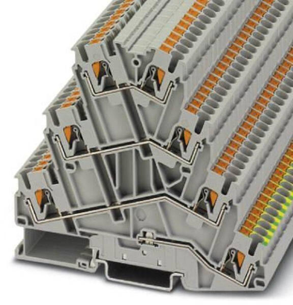 Motorsorkapocs, négyemeletes, csatlakoztatás módja: direkt rugós csatlakozás, keresztmetszet: 0,14 mm2 - 4 mm2, AWG: 26 - 12, szélesség: 5,2 mm, magasság: 91,1 mm, szín: szürke, szerelés módja: NS 35/7,5, NS 35/15