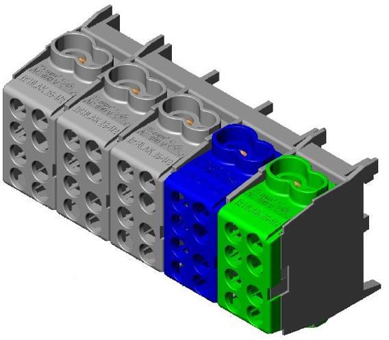 Fővezetéki leágazókapocs 3+N+PE 5x(2x25+4x16mm2) 5P csavaros kalapsínre HLAK 25-5/10-S Pollmann