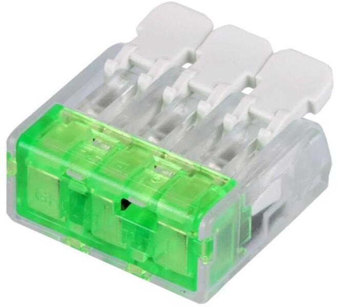 TRACON Csavar nélküli vezetékösszekötő, nyitható átlátszó, 0,2-4(2,5)mm2, 32A, 450VAC 3P (RVOG3) Termékin formáció: