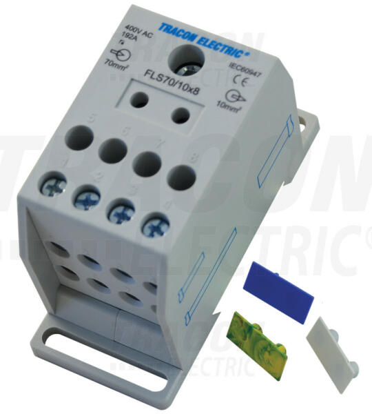 FLS70/10X8 Fővezetéki leágazó sorkapocs, sínre szerelhető1×70mm2 / 8×10mm2, 400VAC, 192A, MULTICOLOR