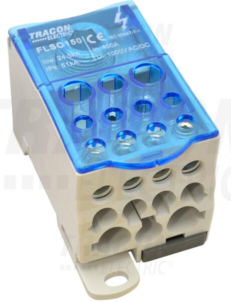 FLSO150 Fővezetéki leágazó sorkapocs nyitható fedéllel1×150(120)mm2/5×16(10), 4×25(16), 2×35(25)mm2, 1000VAC/DC, 400A