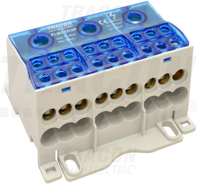 FLSO50-3P Fővezetéki leágazó sorkapocs nyitható fedéllel3×1×50(35)mm2 / 3×6×16(10)mm2, 690VAC/DC, 175 A
