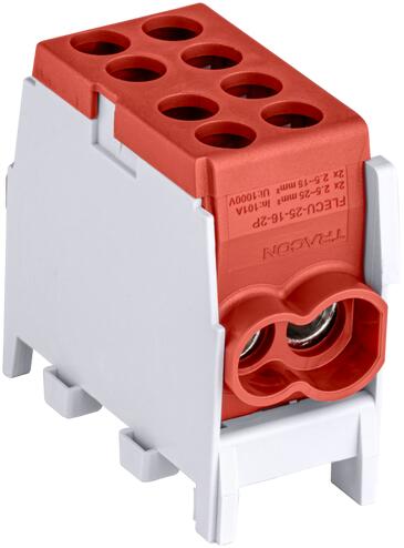 Tracon Főáramköri leágazó kapocs, sínre szerelhető, piros 2.5-25mm2, max. 1000VAC/DC, max. 101A (FLECU-25-16-2P)