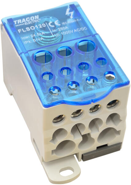 Tracon Fővezetéki leágazó sorkapocs nyitható fedéllel 1×120(95)mm2/5×25(16), 4×16(10), 2×35(25)mm2 (FLSO120)