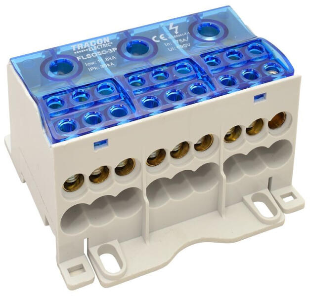 Tracon Fővezetéki leágazó sorkapocs nyitható fedéllel 3×1×50(35)mm2 / 3×6×16(10)mm2 175A FLSO50-3P Tracon (FLSO50-3P)