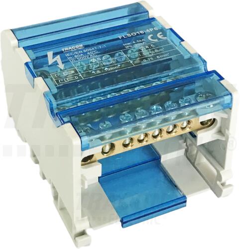 Tracon Moduláris elosztóblokk nyitható fedéllel 1×16(10) mm2 / 5×10(6) mm2, 500VAC/DC, 80A (FLSO16-4P6)