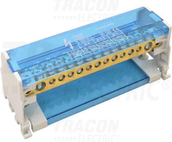 Tracon Moduláris elosztóblokk nyitható fedéllel 2×25(25)mm2 / 4×10(6)mm2, 5×16(10)mm2, 500VAC/DC, 100A (FLSO25-2P11)