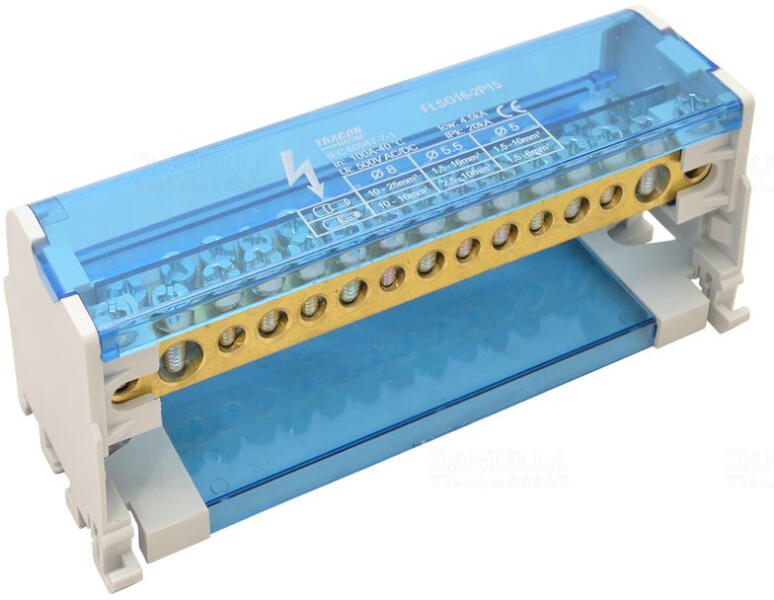 Moduláris elosztóblokk nyitható fedéllel 2×25(25)mm2 / 4×10(6)mm2, 5×16(10)mm2 FLSO25-2P11 Tracon
