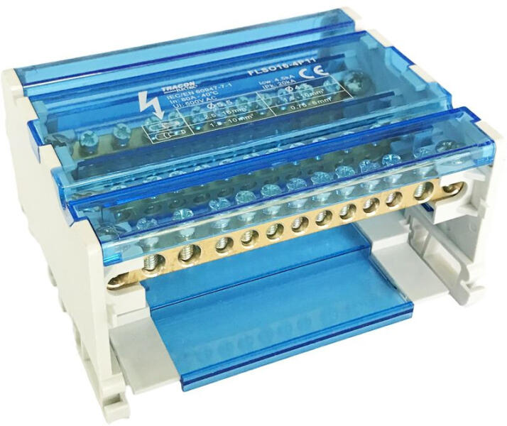Moduláris elosztóblokk nyitható fedéllel 3×16(10) mm2 / 8×10(6) mm2 80A FLSO16-4P11 Tracon