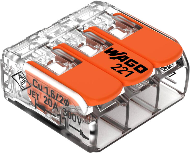 A WAGO összekötő csatlakozó, amely megkönnyíti és javítja a merev kábelek, sodrott és vékony vezetékek összekapcsolását. ##Ez## minimalizálja a helyet az összekötő dobozok belsejében. ##A## átlátszó ház segít vizuálisan ellenőrizni a csatlakozás minőségét.