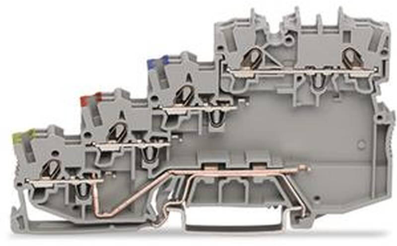 WAGO 2000-5417 4 vezetékes érzékelő sorkapocsPNP-kapcsoló szenzorokhoz földelő csatlakozással, szürke