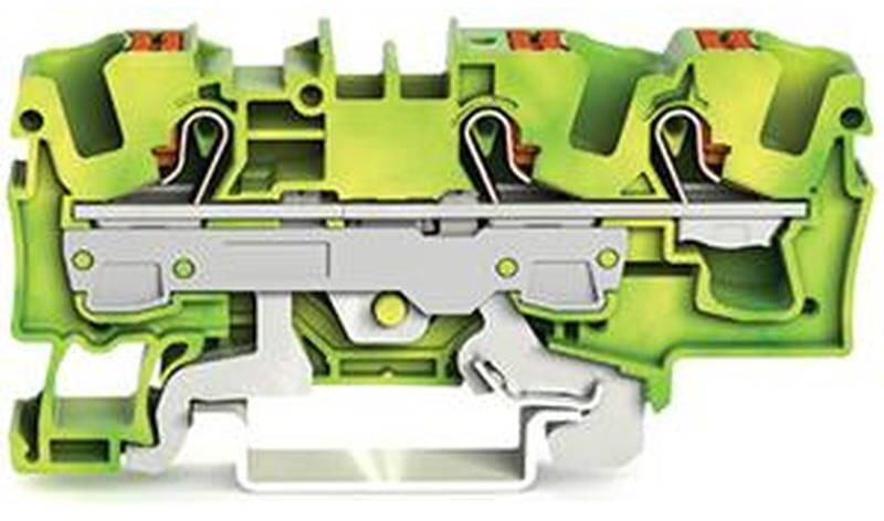 WAGO 2206-1307 3 vezetékes földelő sorkapocsnyomógombbal 6 mm2, zöld-sárga