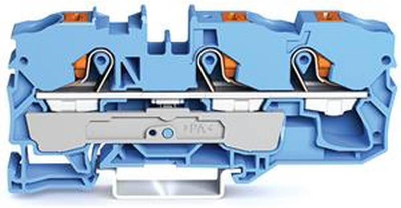 WAGO 2210-1304 3 vezetékes átmenő sorkapocsnyomógombbal 10 mm2, kék