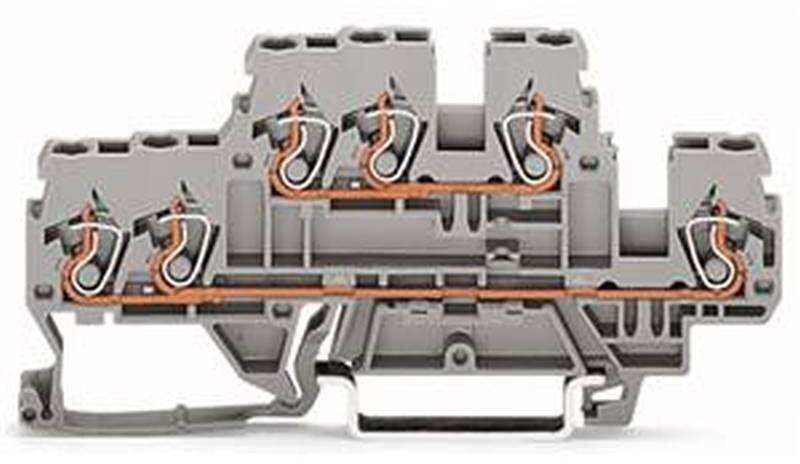 WAGO 870-531 3 vezetékes, kétemeletes sorkapocsÁtmenő/átmenő sorkapocs, szürke