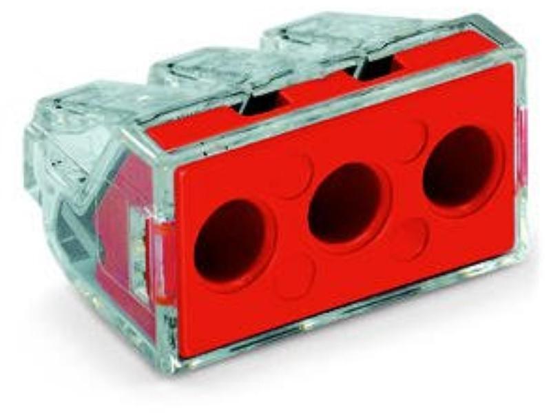 Wago Vezetékösszekötő 3 pólusú nem oldható piros tömör 3x2, 5-6mm2 41A (WAGO773173)