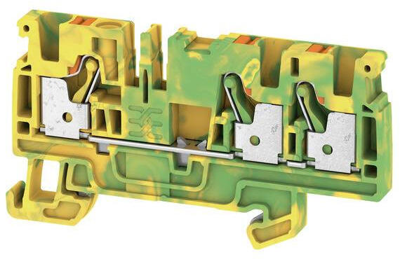 PE-kapocs, PUSH IN, 4 mm2, 800 V, Csatlakozások száma: 3, Szintek száma: 1, Zöld / sárga, narancssárga