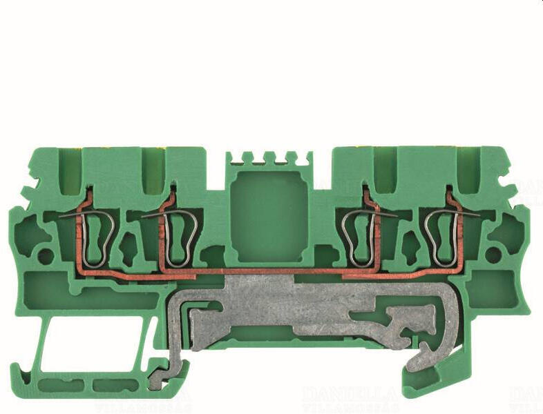 PE-kapocs, Húzórugós csatlakozás, 1.5 mm2, 500 V, Csatlakozások száma: 4, Szintek száma: 1, Zöld / sárga