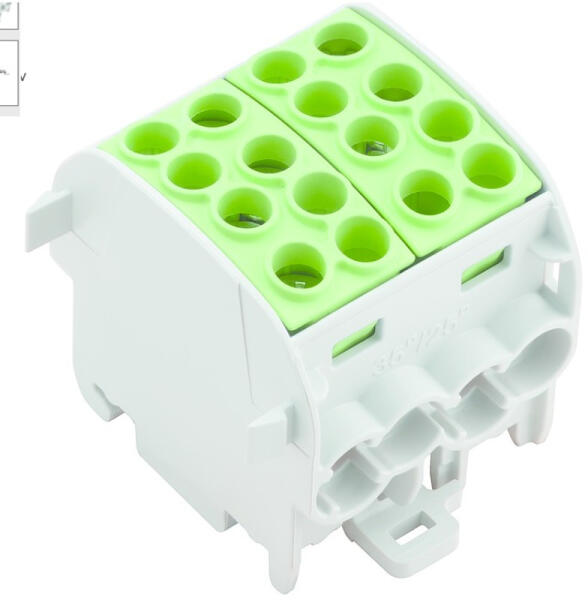 Potenciálelosztó kapocs, Csavaros csatlakozás, 1000 V, 202 A, Pólusszám: 2, zöld