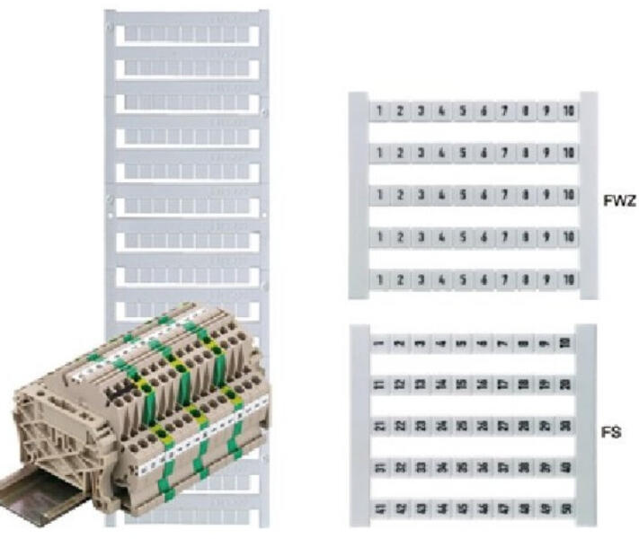 Jelölő sorkapcsok jelöléséhez. A jelölők plotter vagy nyomtató és a megfelelő szoftver segítségével feliratozhatók.